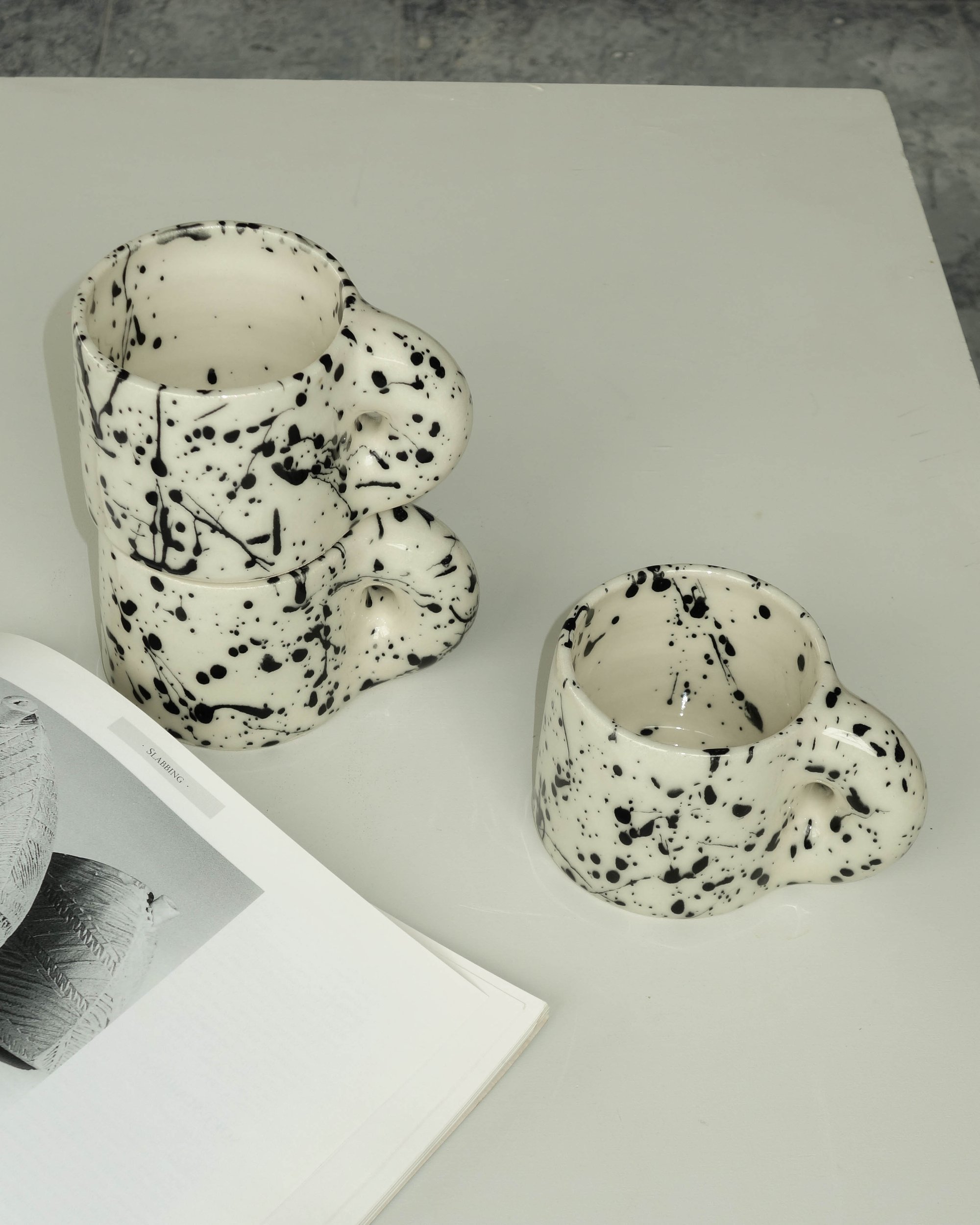✶ Wheel-thrown by hand and finished in bright gloss glaze covered in splatters.