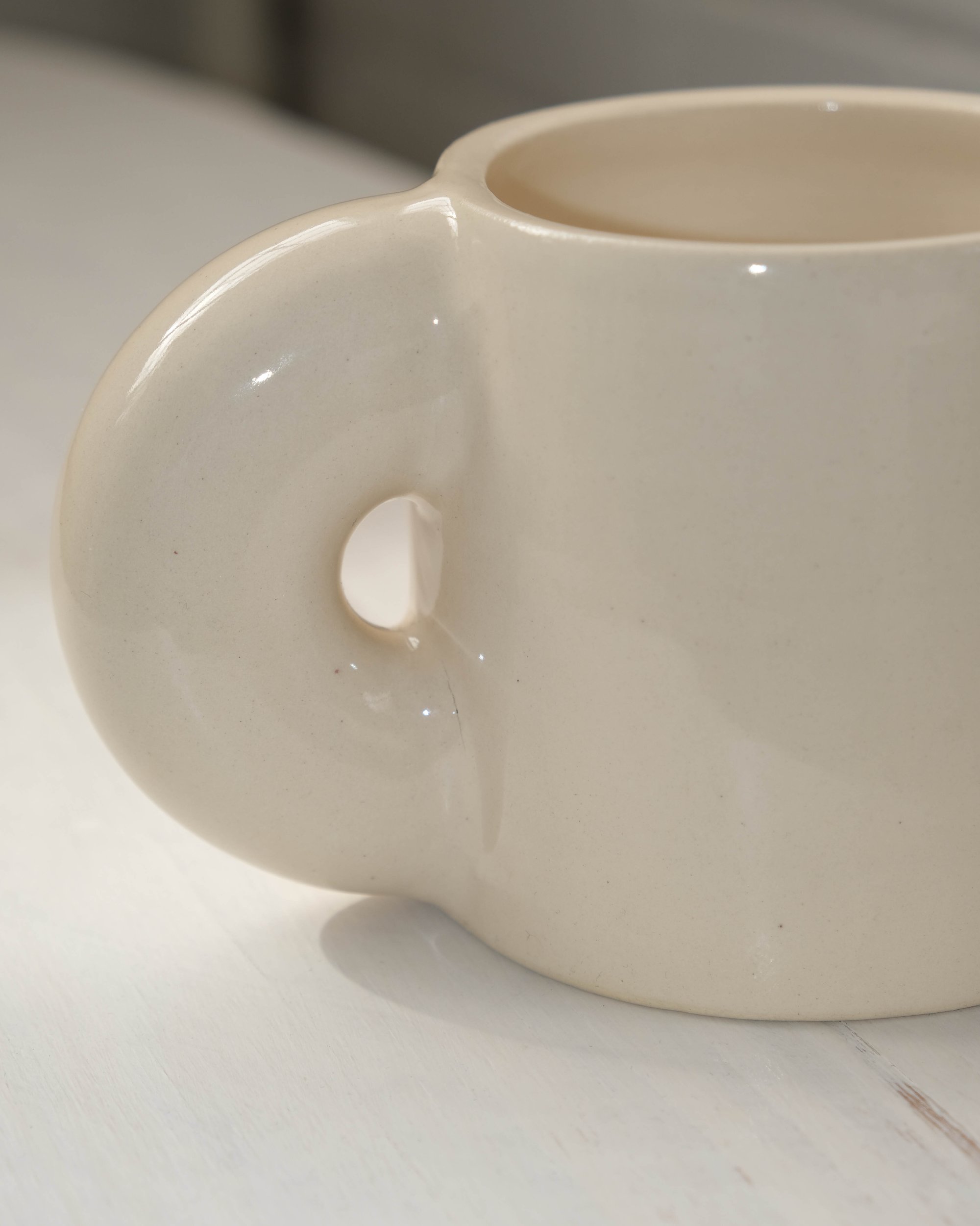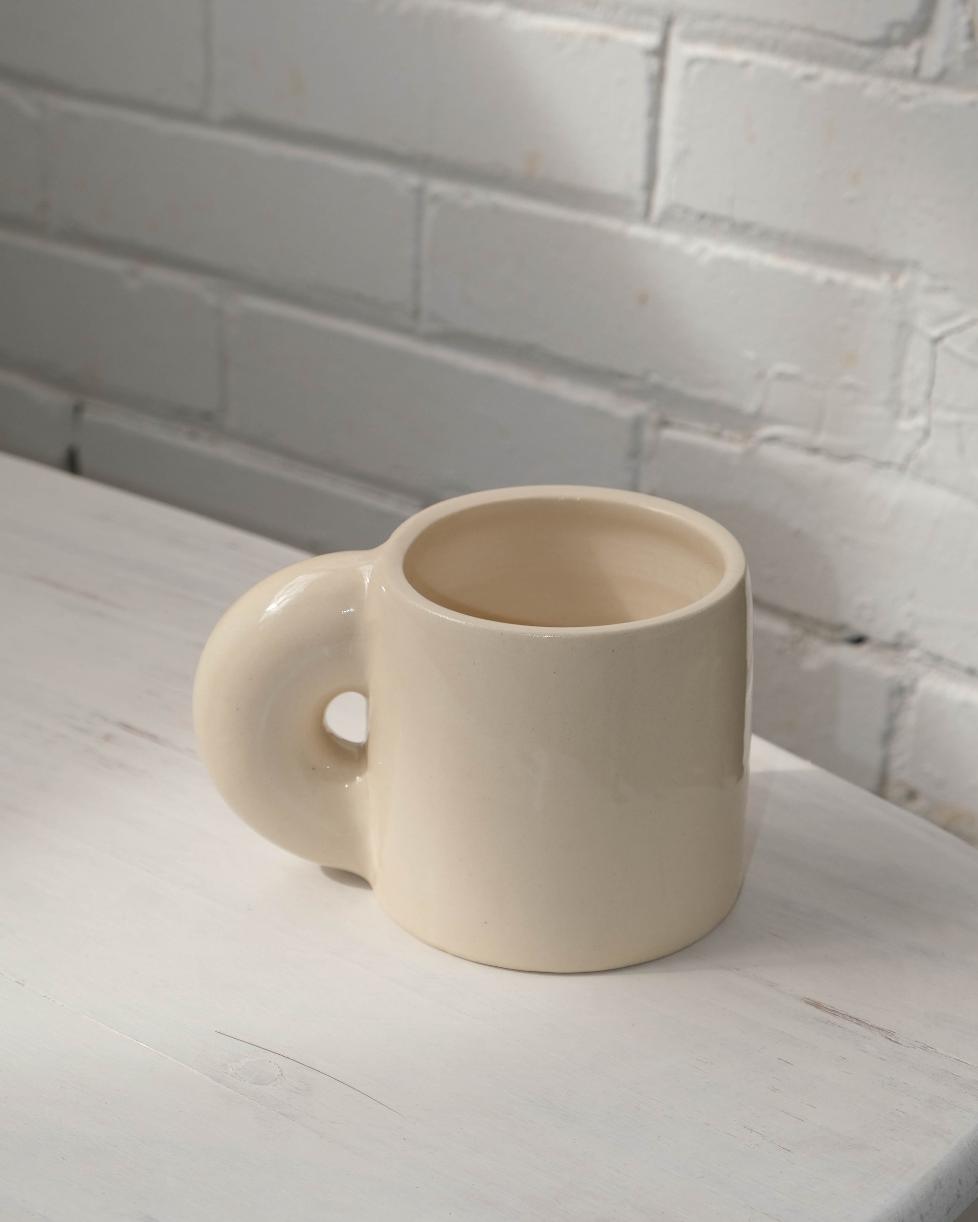 A bold, everyday mug. Wheel-thrown by hand and finished in a textured black gloss glaze, the chunky mug has a rounded silhouette that feels solid in the hand without being heavy..