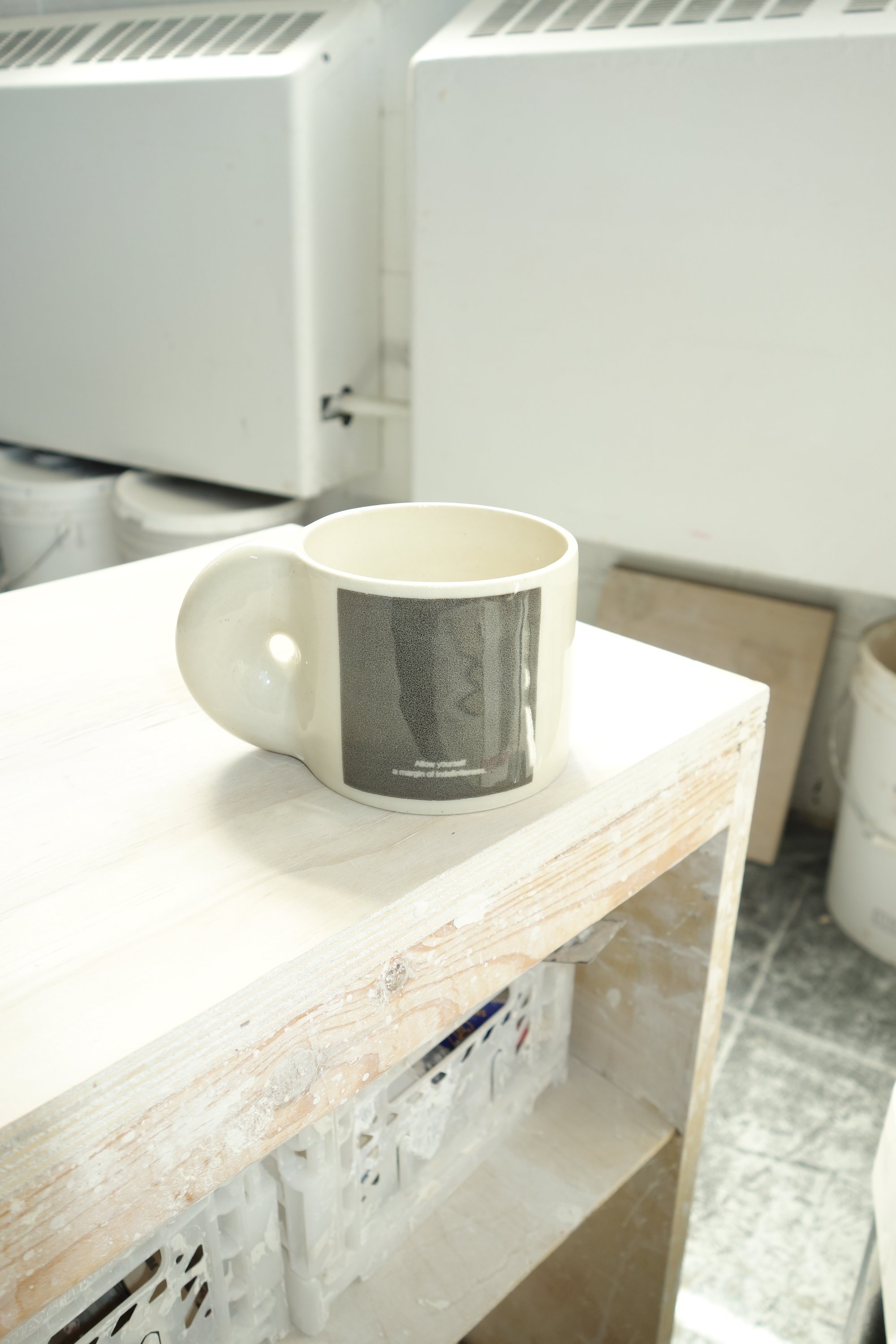 A bold, everyday mug featuring a quote from french film maker, robert bresson.