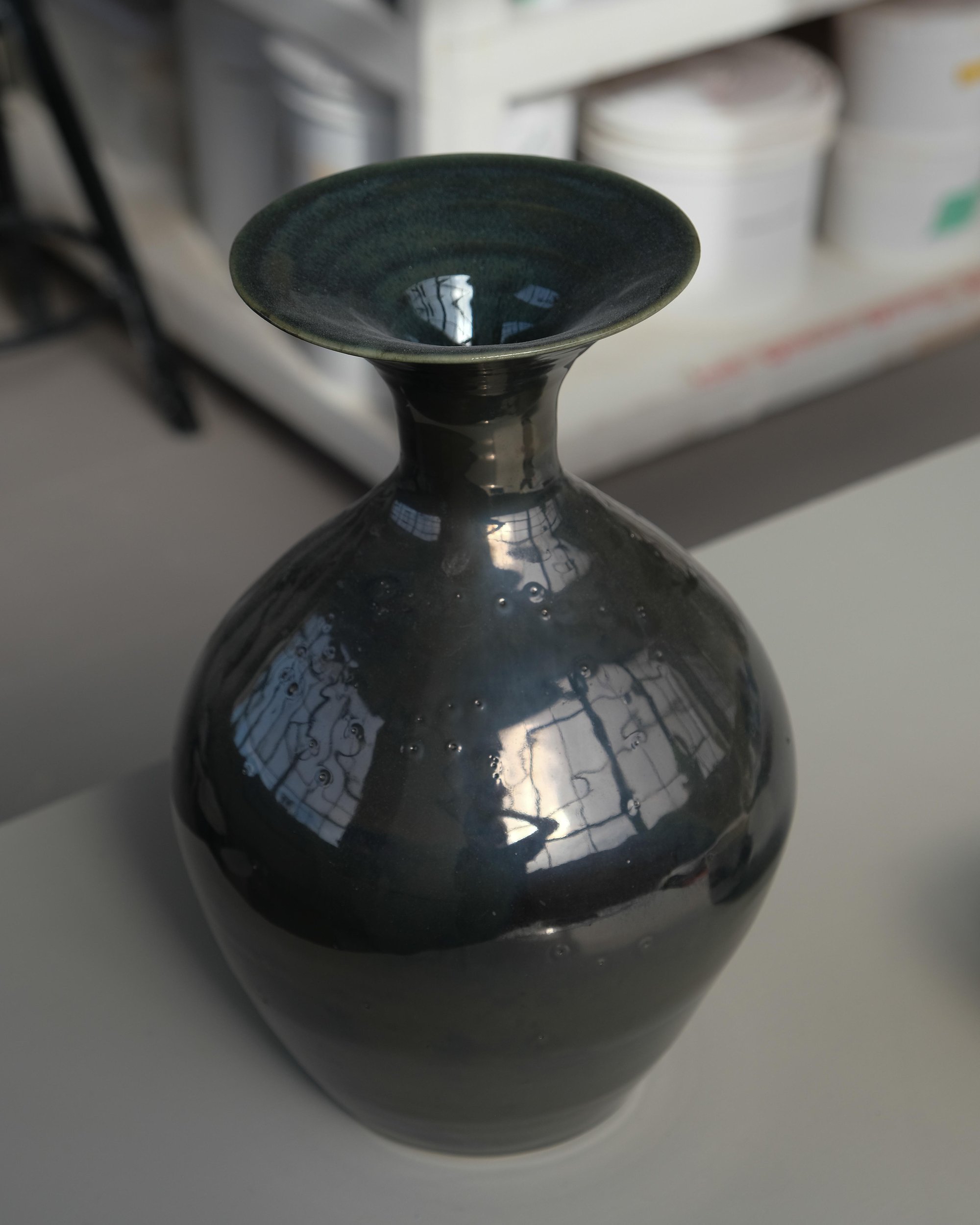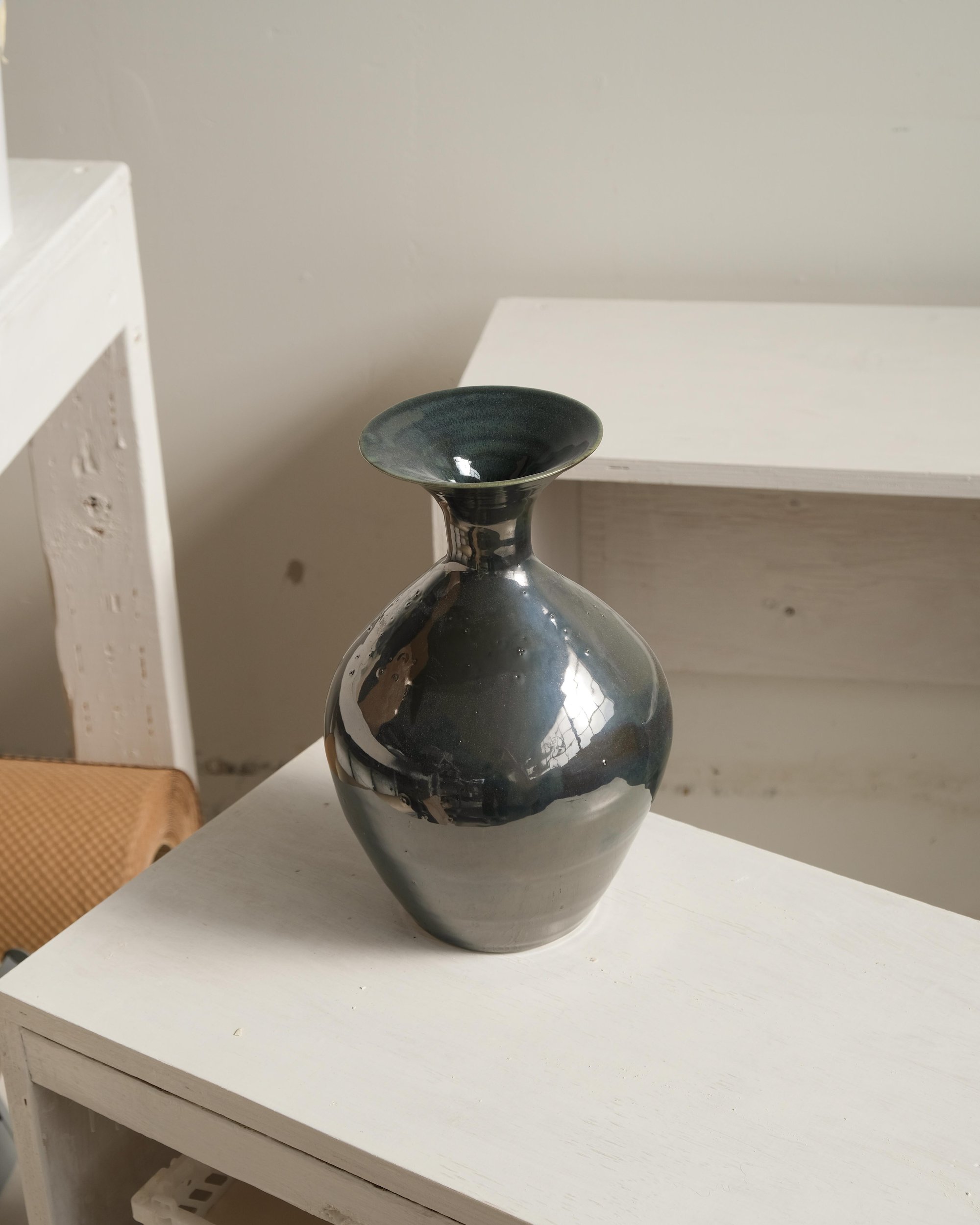 A classic style vase, finished in a metallic glaze.