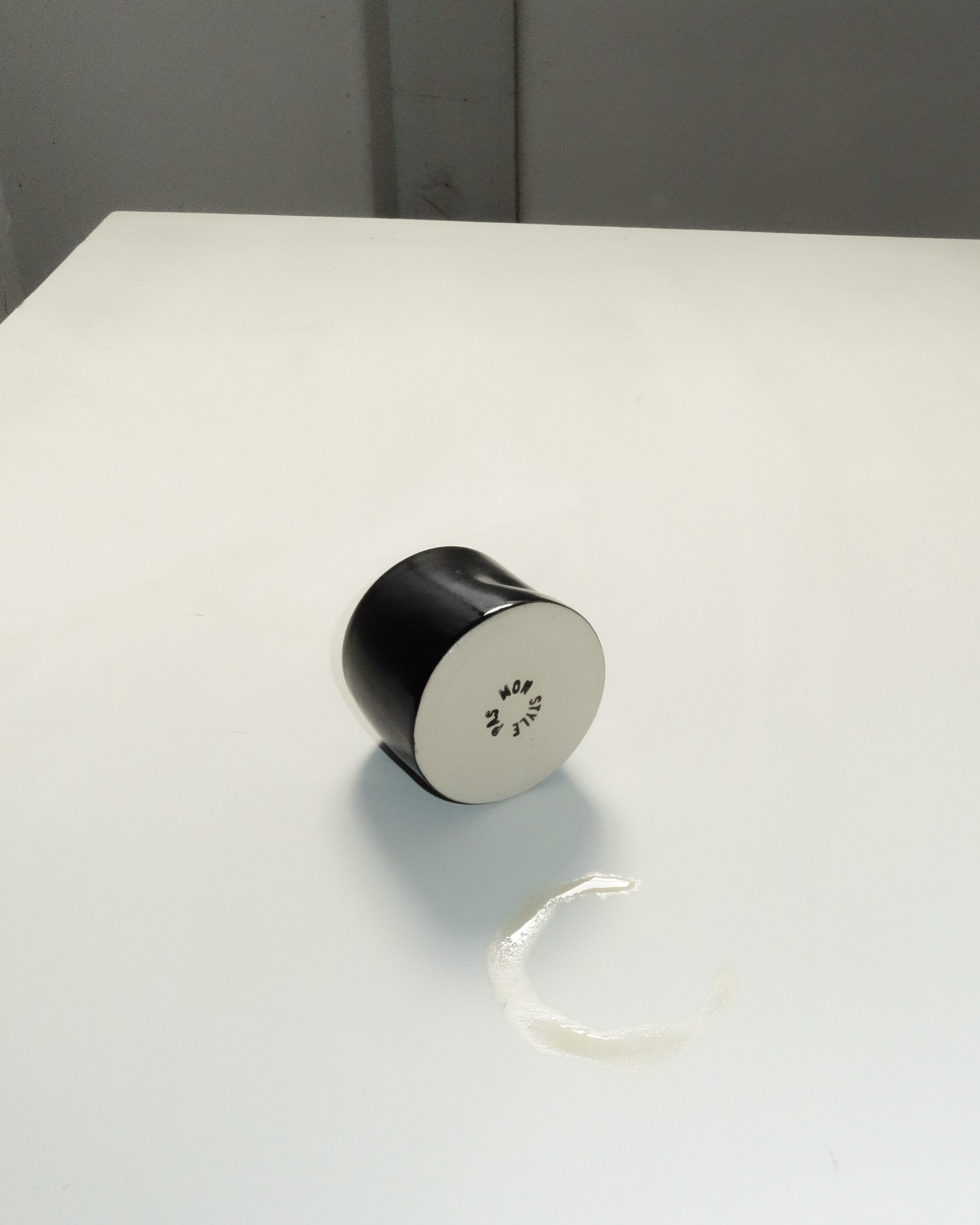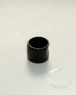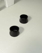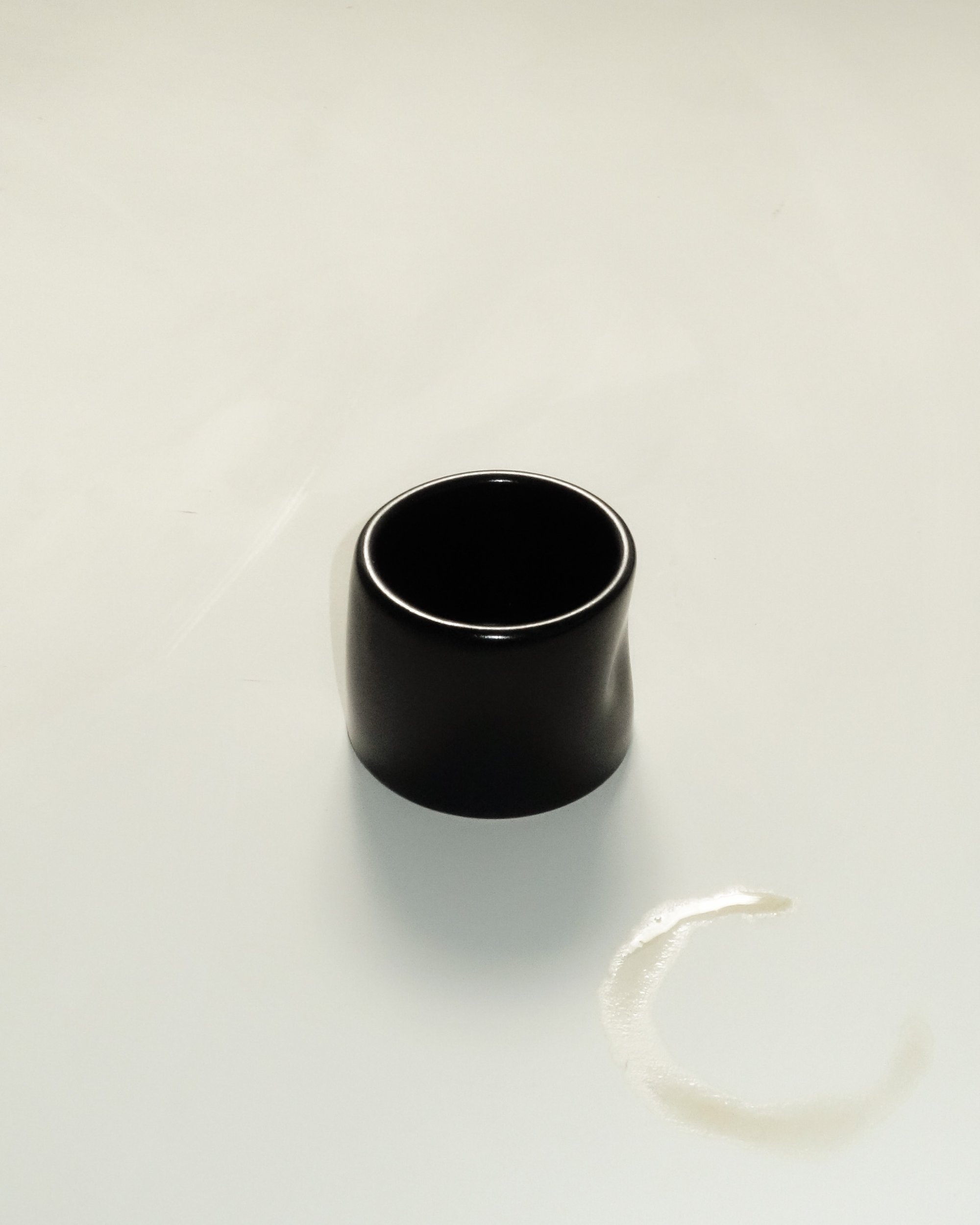 The crush cup is thrown on the pottery wheel and squished by hand. Glazed in black gloss + stamped on bottom.