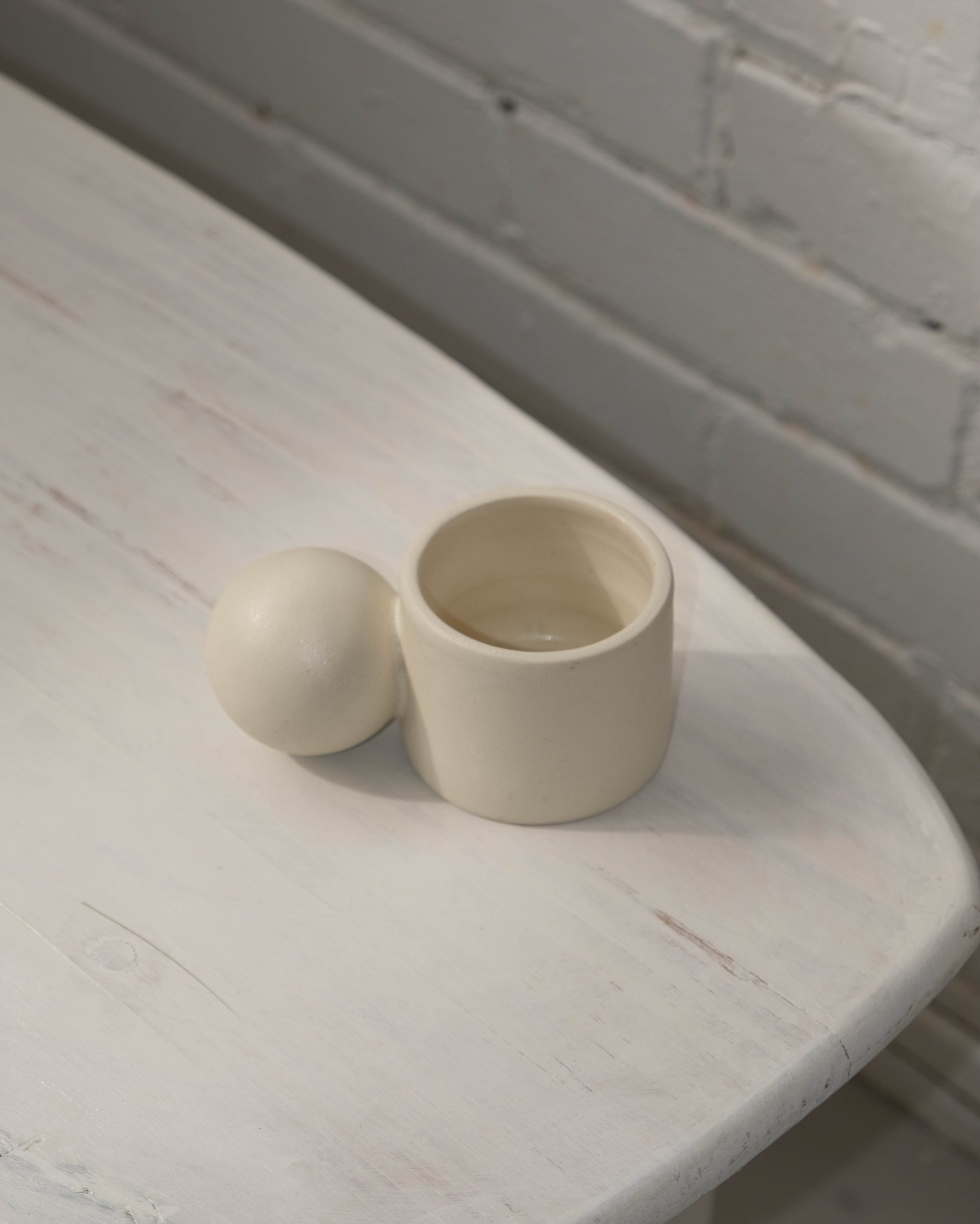 Thrown on the pottery wheel in two parts. The handle is hollow.